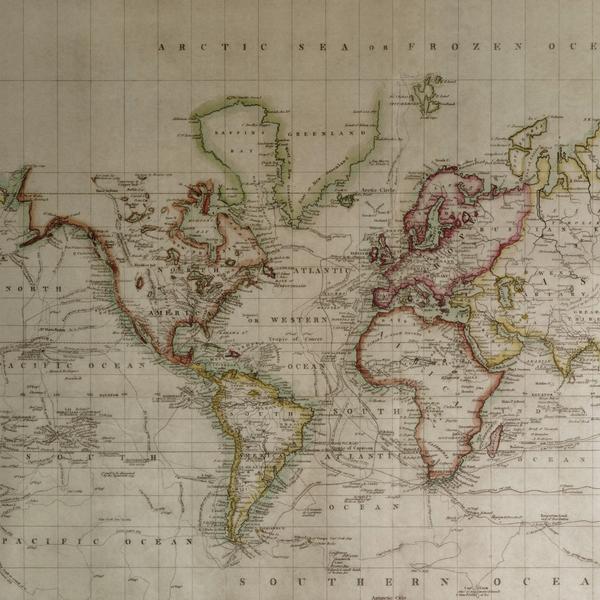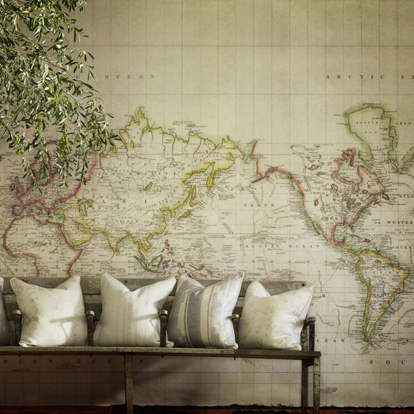 Het Andrew Martin behang Latitude is een afbeelding van een vintage wereld kaart.