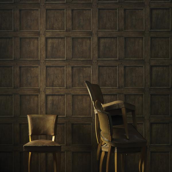 Het Andrew Martin behang Regent is een stijlvol behang met houten panelen.