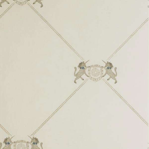 Het Andrew Martin behang Unicorn is geïnspireerd op de schilden van middeleeuwse edellieden. Het behang is beschikbaar in twee verschillende kleuren.